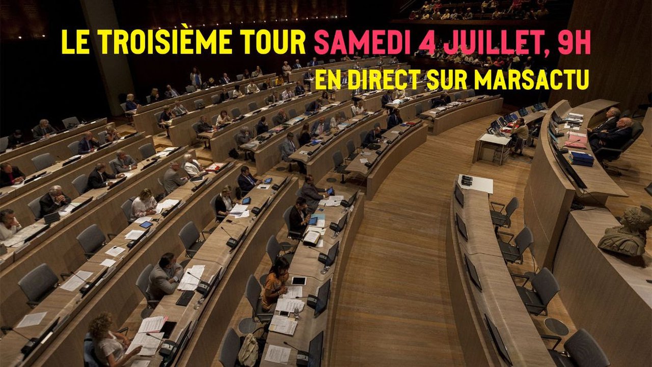 Michèle Rubirola récolte 51 voix et fait le plein du groupe de Samia Ghali avec l'appoint, probablement, de Lisette Narducci. Guy Teissier s'arrête à 41, soit les élus de Martine Vassal, avec le soutien de Bruno Gilles et Marine Pustorino.